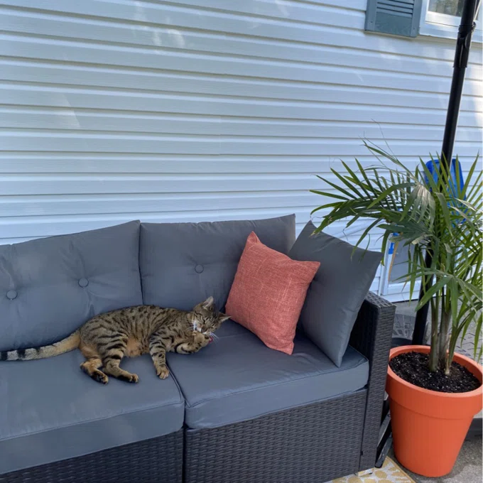 this outdoor sofa set is everything!!! 👌💯 super comfy, easy-to-clean fabric (a must-have when you have pets), sturdy frame that doesn't wobble...honestly couldn't ask for more! definitely worth splurging on if you're thinking about sprucing up your backyard or balcony 🙌