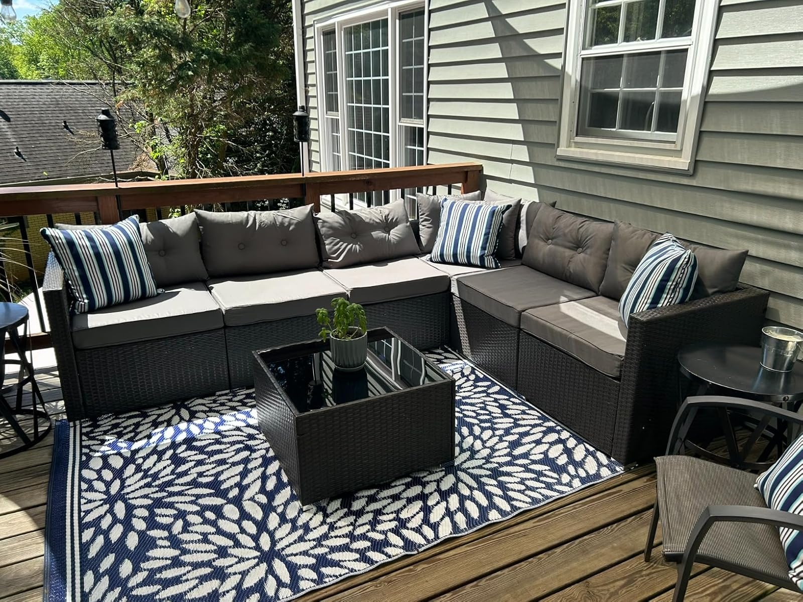 This 7-piece ensemble fits perfectly on our deck providing enough room for everyone during gatherings plus incredibly easy maintenance - definitely recommended if you're thinking about sprucing up your backyard or balcony.