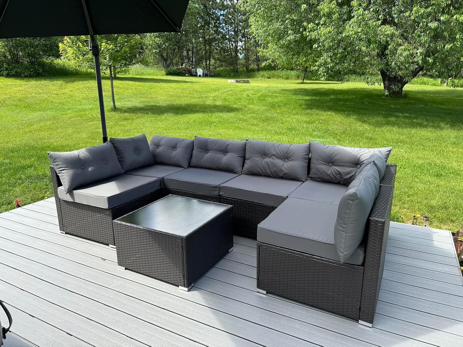 Love this 7-piece sofa set! It has really transformed our backyard into a cozy retreat. The quality is excellent - sturdy, durable and weather-resistant.