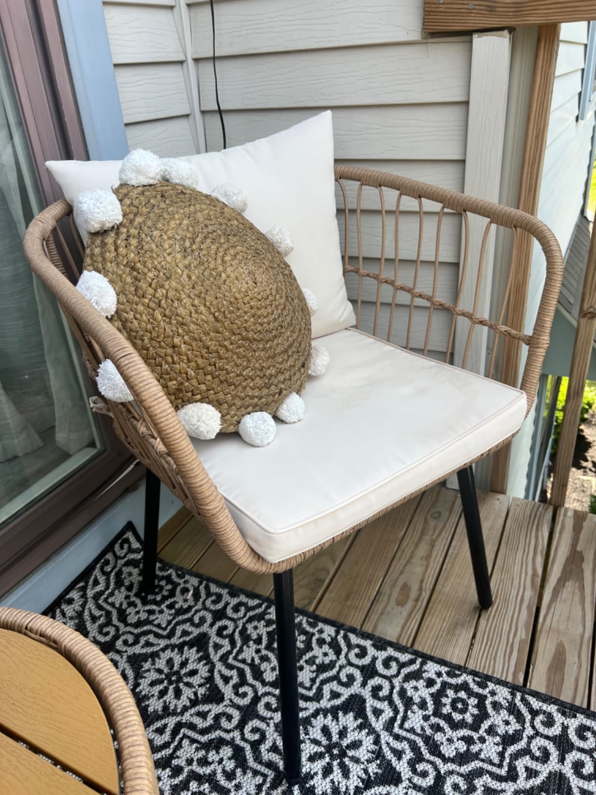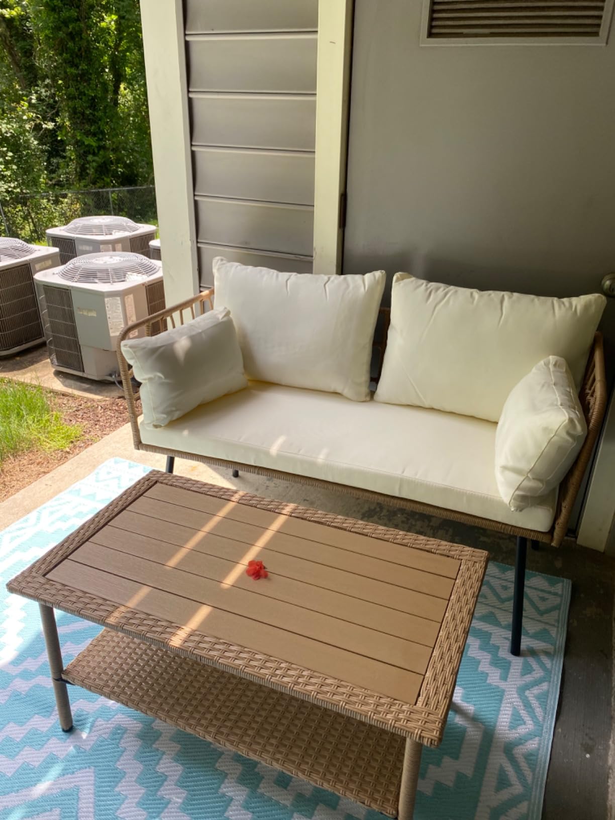 I am sooo happy with this purchase. And I’m proud of myself because I put it together all by myself! I love sitting outside drinking my iced coffee everyday on this cute little couch!!