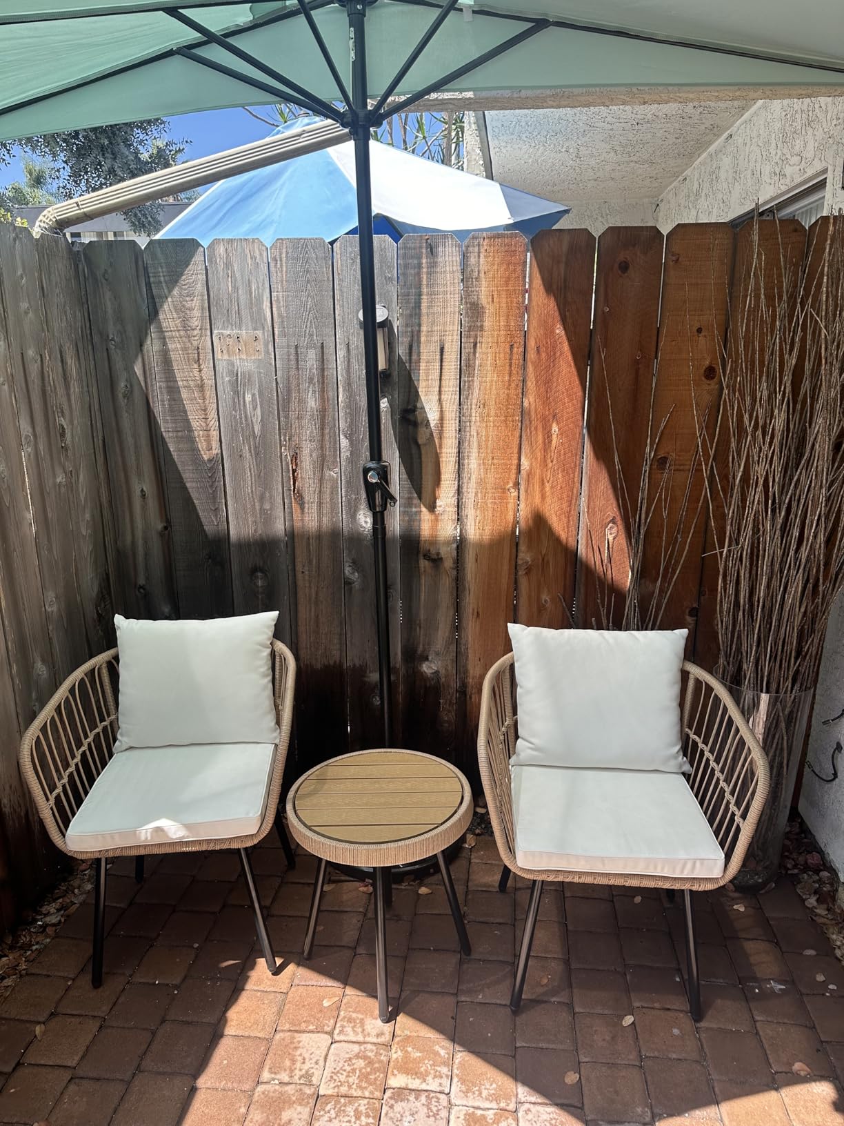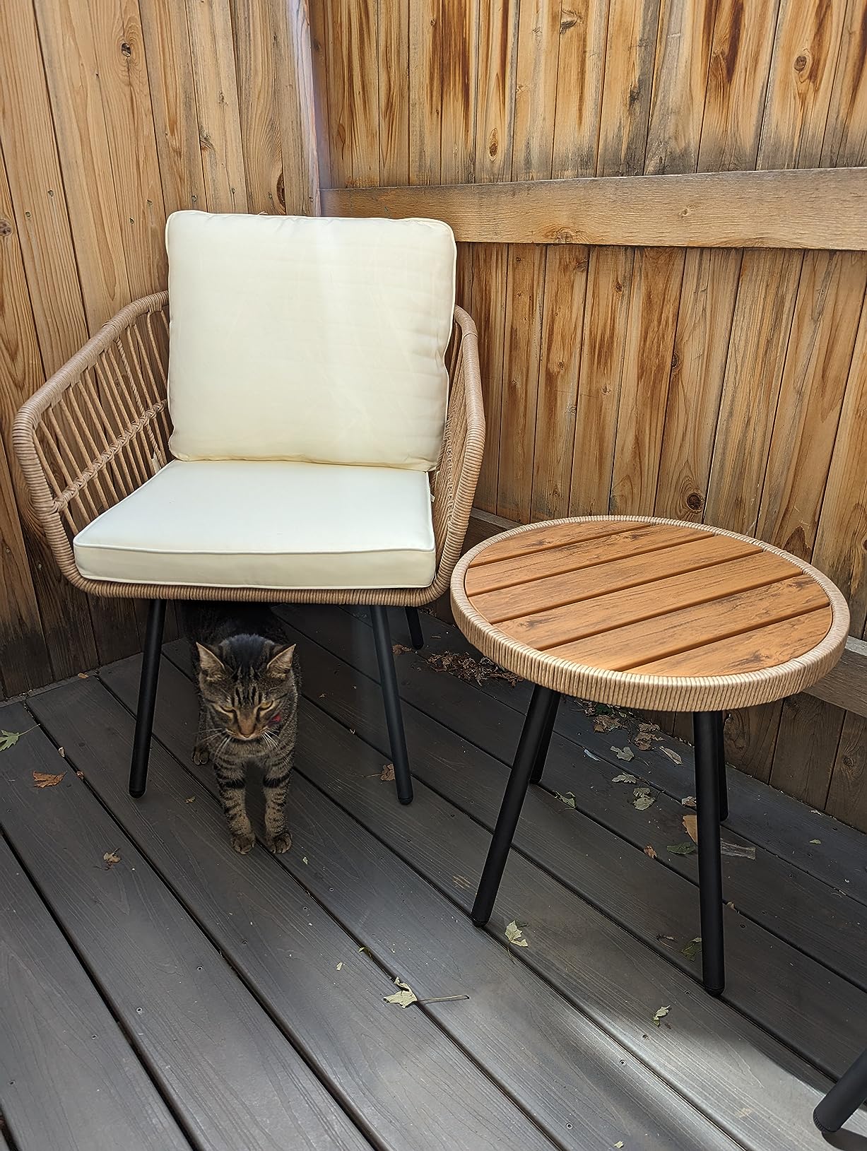 got this cute little conversation set for our deck recently and oh boy...it’s been taken over by our two cats already 🐱 they seem to enjoy lounging on them as much as we do! what makes these pieces even better is their sturdiness and ease of cleaning which means no worries about pet hair or dirt!