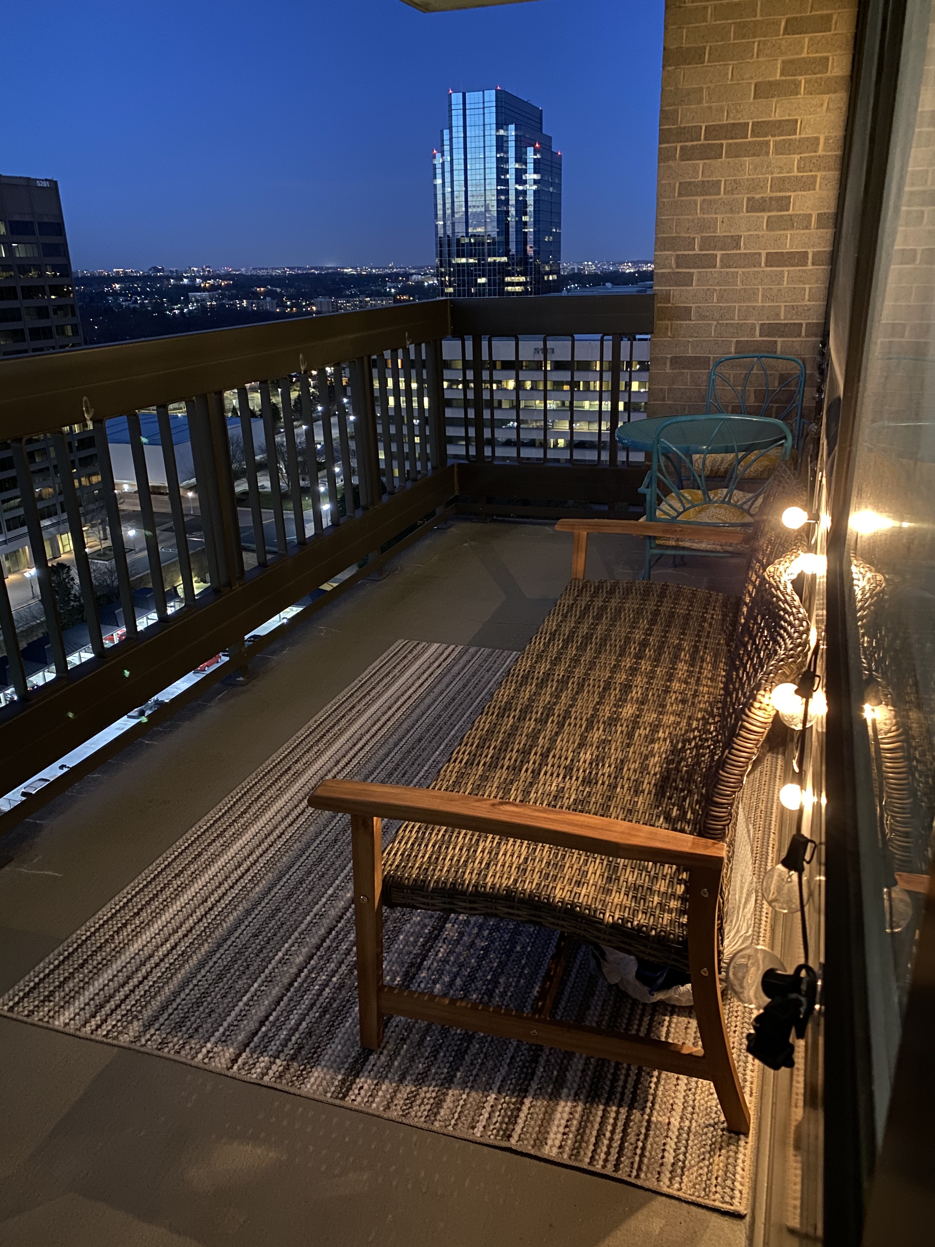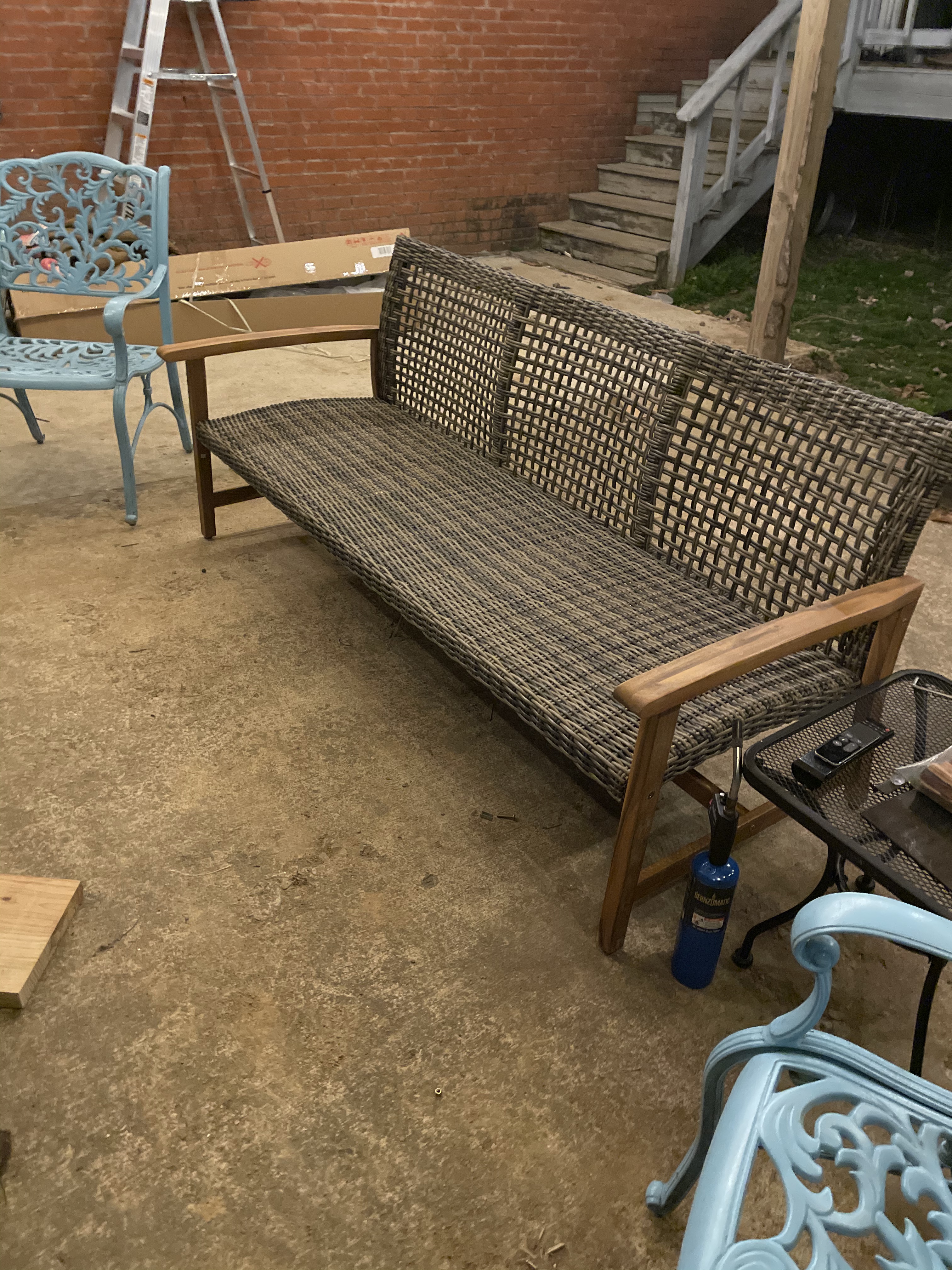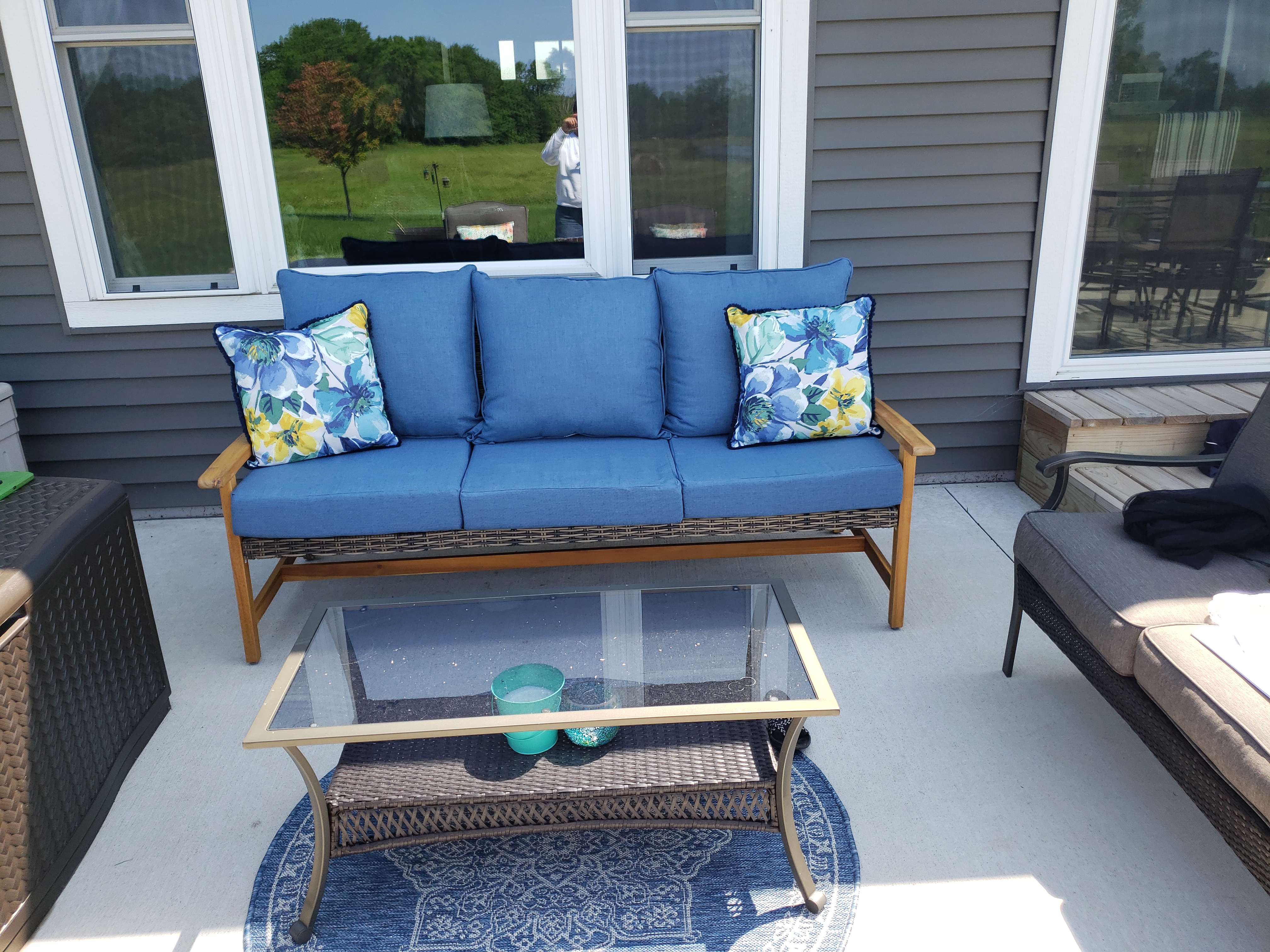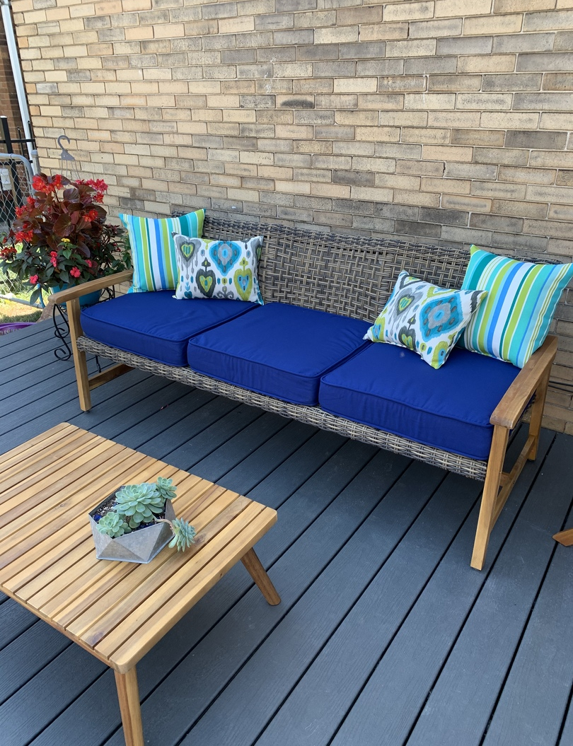 A cozy addition to my patio. Seats three comfortably!