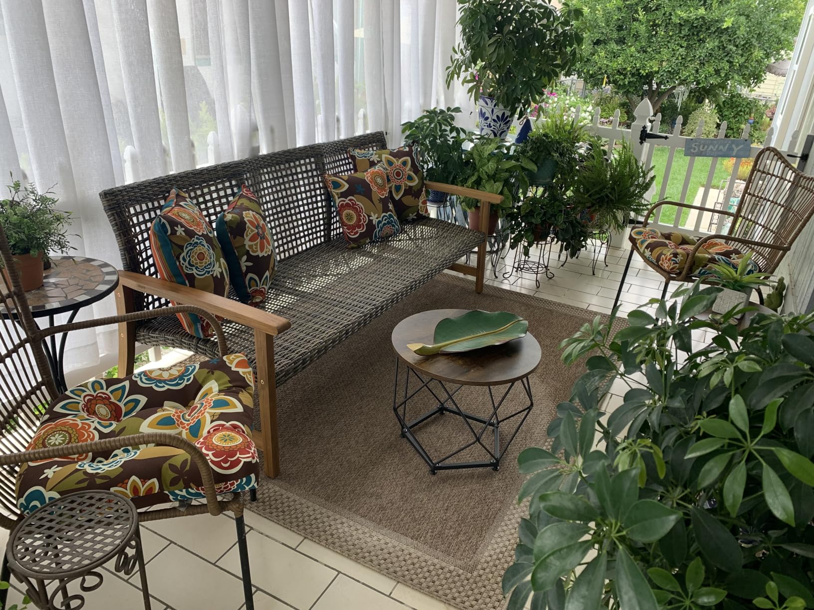 This piece has really transformed my patio into a cozy oasis. It's weather-resistant and easy to clean too!