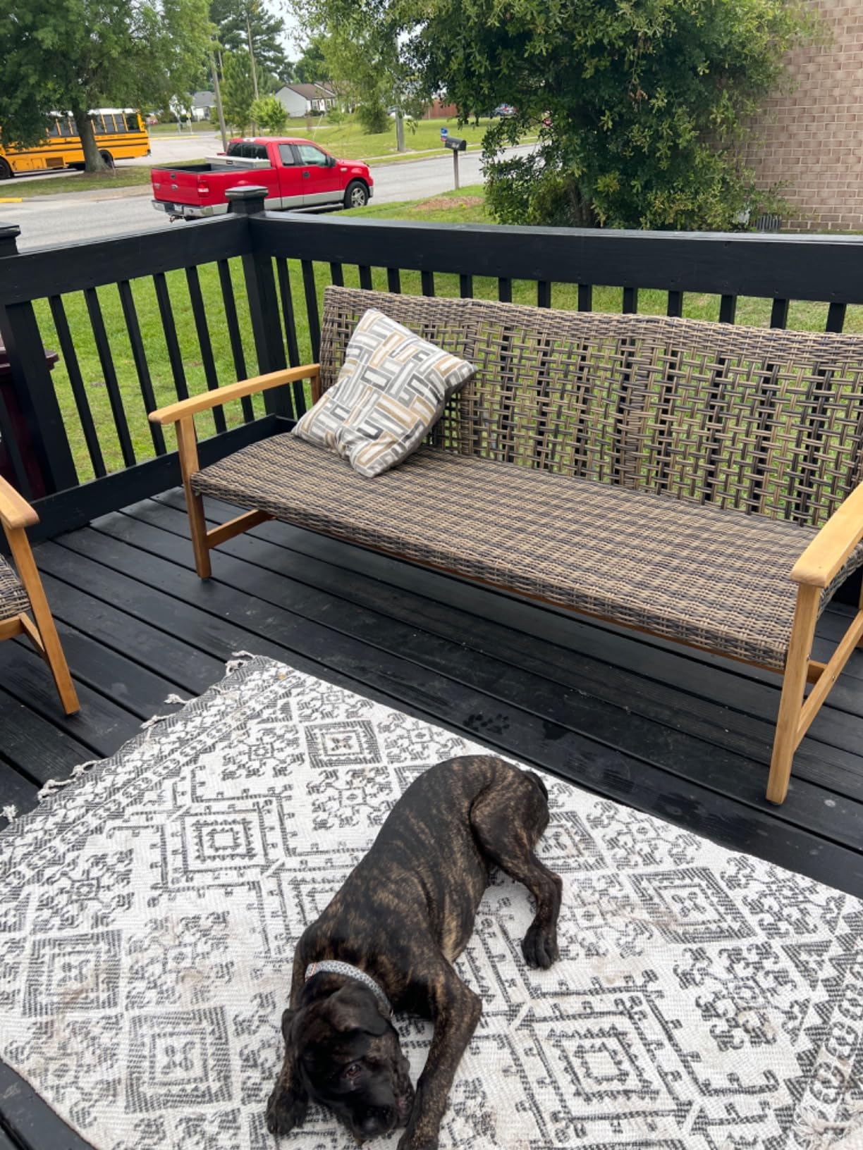 Loving the weather-resistant wicker seat. Easy to clean too!